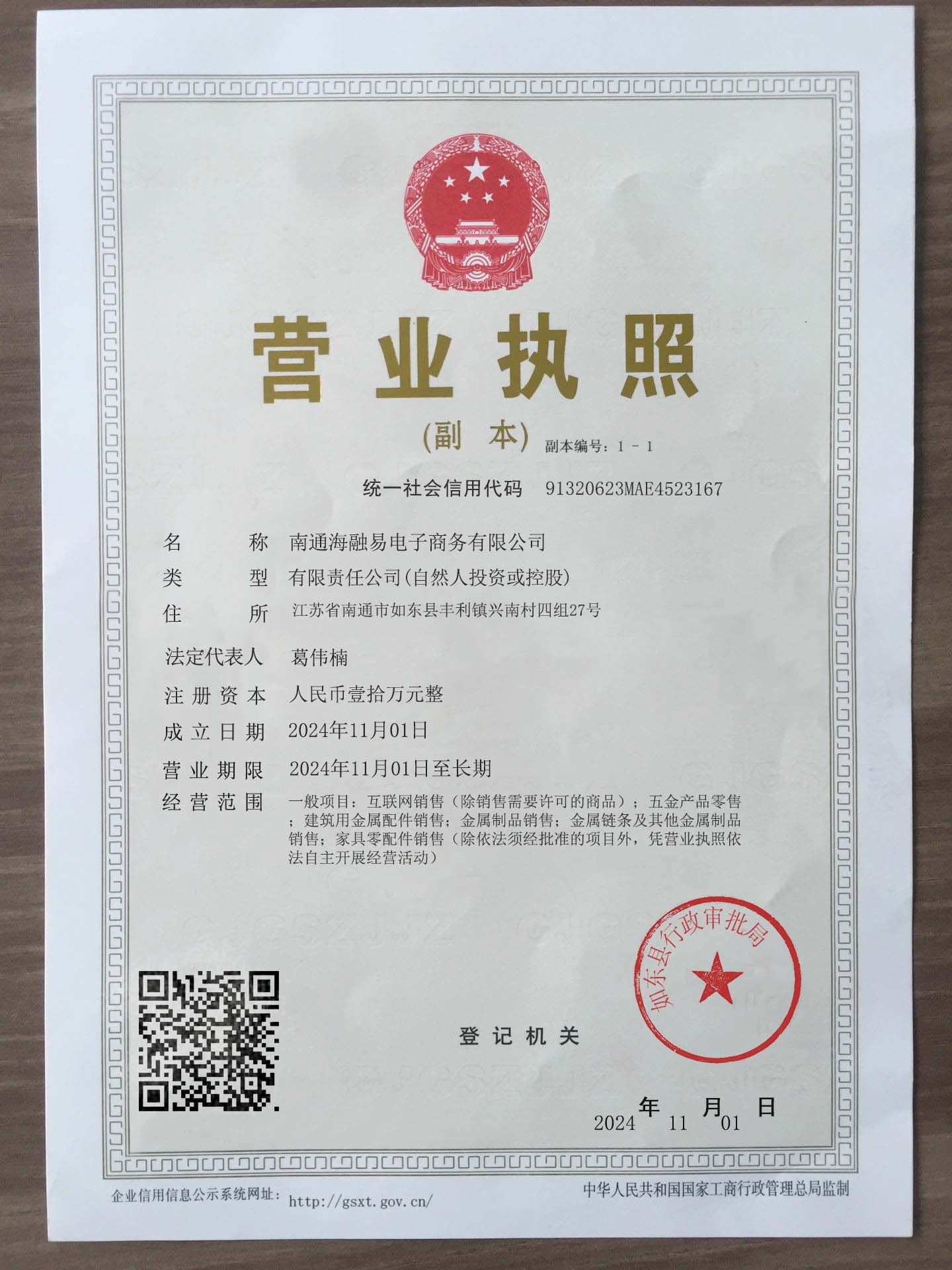 Corporate name:Nantong Hairongyi E-commerce Co., Ltd.